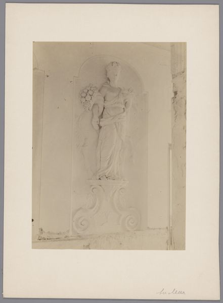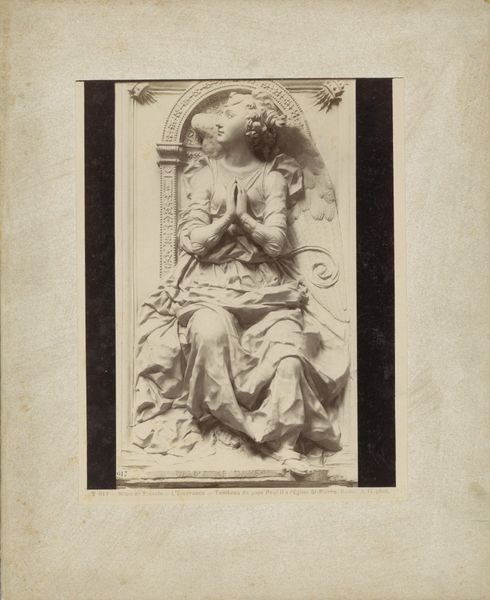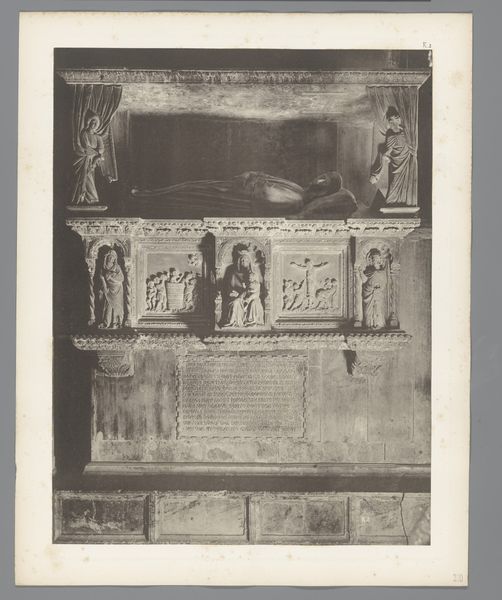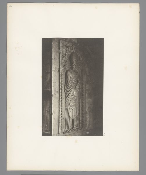 This photogravure by Carl Heinrich Jacobi captures a relief of saints and angels from San Marco in Venice. The monochromatic image is dominated by a structured arrangement of figures within a defined architectural framework. The figures are framed by an archway, the composition is divided into distinct vertical and horizontal registers. The photograph presents a fascinating interplay between form and representation. Jacobi’s choice of photogravure lends a tonal depth that accentuates the textures and intricate details of the relief. We see the cultural codes embedded within the sculptural forms of religious iconography; the semiotic system of halos, gestures, and drapery. The monochromatic tone encourages a reading of pure form, inviting us to consider how the organization of the image might challenge fixed meanings and values. The relief becomes more than a religious scene. Jacobi uses the photogravure to explore ideas of space, perception, and representation.