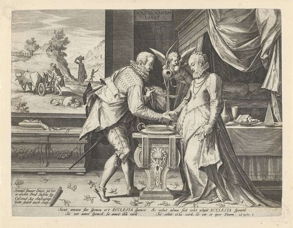 This engraving, made by Dirck Volckertsz Coornhert, presents us with a scene laden with allegory. The medium itself, etching on metal plate, is key to understanding the work. This was a reproductive technology, allowing for the wide dissemination of images. Note how Coornhert uses the crisp lines achievable through etching to draw a sharp distinction between labor and luxury. On the left, you see a flurry of construction, the beams and blocks depicted with meticulous detail. The workers are dwarfed by the buildings they’re erecting, their labor feeding the growth of the city. In contrast, the right side of the image shows a figure kneeling before a seated ruler in a lavish interior. The money bag held by the central allegorical figure connects these two zones – it is the product of labor that funds the opulent lifestyle of the elite. Coornhert thus uses the reproducible medium of engraving to comment on the social divisions perpetuated by economic inequality, a theme as relevant today as it was in the 16th century.