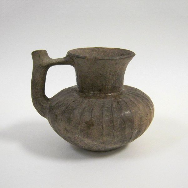 Curator: Before us is a “Pitcher”, dating from around 1877 to 1892. This earthy-toned piece, a product of Chelsea Keramic Art Works, resides here at The Metropolitan Museum of Art. Editor: It's remarkably stoic, isn't it? That somewhat muted celadon glaze over the ceramic gives it a practical feel, despite the rather unusual geometry. I can imagine this in a Shaker kitchen, despite the late 19th century origin, with its commitment to functionality over overt embellishment. Curator: That makes sense. We could frame it within the broader Arts and Crafts movement and its focus on utilitarian beauty, even if not directly affiliated. This movement certainly aimed at social reform, questioning the industrial revolution's impact. The design feels intentional – an assertion of crafted objects in a rapidly changing world. Editor: Exactly. You get the feeling of handmade integrity. It’s certainly not shouting from the rooftops. It presents a certain austerity, wouldn't you agree? What about the context of its use – what sort of social rituals would have involved a piece like this? Curator: It's difficult to say specifically. The emerging middle classes sought ways to emulate aristocracy. The act of carefully pouring and sharing water or beverage was refined, elevated from simply quenching thirst to a symbol of cultivated domesticity. Objects became critical. Editor: And there's a fascinating duality, isn't there? On one hand, the austerity suggests an ethical stand against materialism. On the other hand, the very presence of such a carefully designed object implies privilege. Consumption always implicates us in complex power dynamics. The design aesthetic hints at the broader politics of its period, in terms of class and gender. Curator: A pertinent point. By displaying and studying objects such as this, museums create new dialogues on use and meaning of utilitarian, mass produced goods that may have lost their social and political agency as cultural icons and totems. Editor: It reminds us that even something seemingly simple can hold layers of meaning and reflection. A call to engage in deeper introspection perhaps? Curator: Precisely. It is more than a mere object: it invites a critique of socio-cultural ideals around art.