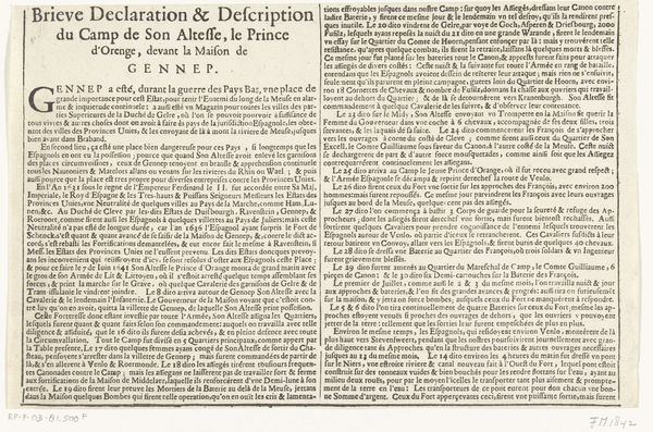 This is a printed text dating back to 1641 by Claes Jansz. Visscher, documenting the departure of the Spanish garrison from Huis te Gennep. Dominating the page is dense typography; the letters march in neat columns across the page. Text, especially in the early modern period, was not merely a vehicle for conveying information. In the intricate dance of symbols, consider the recurring motif of military might, a theme echoed in countless tapestries and triumphal arches throughout history. Here, the arrangement of text mimics the orderly ranks of soldiers, conveying an impression of power and control. Compare this to ancient Roman inscriptions, where carefully chosen fonts conveyed authority and permanence. Typography takes on a psychological dimension, influencing our perceptions and emotions on a subconscious level. Just as a carefully staged procession could inspire awe and obedience, this dense block of text projects a sense of unwavering authority and order. This emblem of control resurfaces repeatedly, transforming with the ages, mirroring the ebb and flow of power.