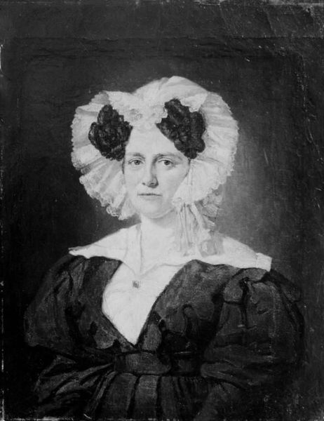David Monies painted this portrait of Hedevig Margrethe Thomsen, mother of the museum founder C.J. Thomsen, using oil on canvas. The monochromatic palette enhances the interplay of light and shadow, lending a sculptural quality to the figure. Note how the ruffles encircling her face draw the eye, framing her features within a delicate architecture of fabric. This elaborate structure contrasts with the smooth, almost stark simplicity of her face, highlighting the tension between ornamentation and austerity. The artist employs a semiotic system in which clothing and adornment signify status, yet the somber tones and the subject’s reserved expression suggest a critique of superficial display. Consider how Monies uses the portrait format to explore the negotiation between public identity and private self. The formal constraints of portraiture, intended to celebrate the sitter, are subtly undermined by a muted palette and understated composition, creating a space for contemplation on the complexities of representation and individual character.