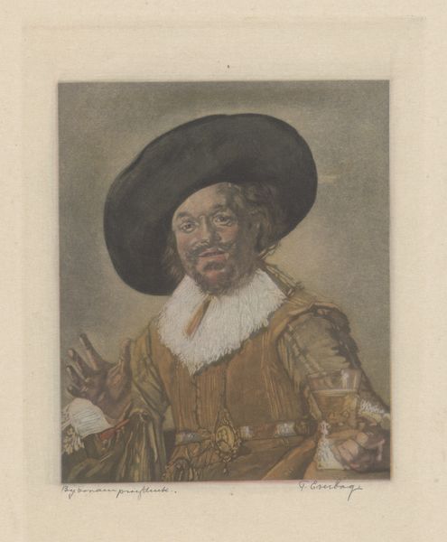 Curator: This is Timothy Cole's "The Jolly Man," a wood-engraving dating back to 1894, now housed here at the Minneapolis Institute of Art. Editor: Well, jolly he seems. There’s a glint in his eye, and his mouth is hinting at a story just waiting to tumble out. A raconteur, definitely, caught mid-anecdote. Curator: The realism in Cole's technique is quite impressive. Consider the meticulous details of the ruff, or the subtle rendering of textures within the woodcut. The material process itself speaks volumes about printmaking’s crucial role in democratizing access to images at the time. Editor: Yes, that ruff! Almost painfully detailed in its precision. The light sort of vibrates across it, despite the print's inherent…stillness, I suppose. He does seem rather stiff, like posing in clothes borrowed for the day, all just slightly ill fitting! Curator: Indeed. These engravings, especially in portraiture, were circulated widely in periodicals and books. Note the scale of the man and how it demands a degree of presence despite being only an ink rubbing, inviting us to think about art’s mass appeal at that moment of transition. Editor: Interesting to think of him as reproduced on a newsstand... but stripped of color, stripped down to ink. Suddenly, the 'jolliness' reads a little bit different now, slightly somber. And look how the dark, broad hat pushes us forward in its shadow, but it feels...isolating somehow? Curator: The social and economic factors impacting art distribution often shaped how people interacted with images and concepts like ‘jolliness’. In Cole's work, art consumption, commercialization, and even notions of craftsmanship find new expression. Editor: Maybe. It is a striking face to study regardless. He’s probably best left in a pub than in newsprint now, as far as I am concerned, holding forth as jolly men are want to do. Thanks, I appreciate that extra…depth. Curator: Of course, providing tools and pathways is what drives the whole project in many senses; so my thanks to you as well.