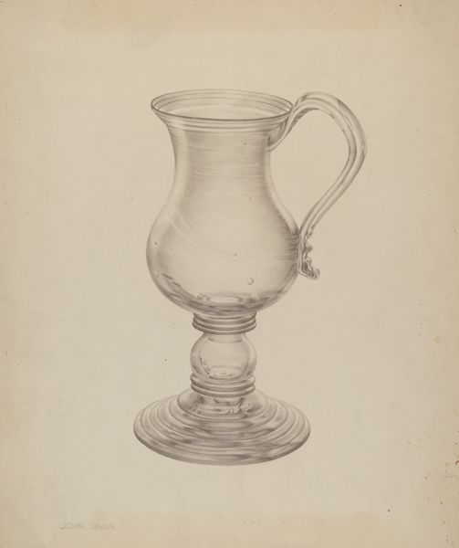 Vincent Carano created this drawing of a "Silver Mug," using graphite on paper. Carano lived through tumultuous times, witnessing the rise and fall of empires, world wars, and significant shifts in social structures. Consider how an object like a silver mug, traditionally associated with wealth and status, might carry different meanings across these eras. Is it a symbol of enduring luxury, or a relic of a bygone era? The smooth, careful shading gives the object a sense of weight. While seemingly simple, this work invites us to reflect on the meaning we assign to everyday objects, and how these meanings shift across time and cultural contexts. It serves as a reminder that even the most mundane items can carry layers of historical and social significance.
