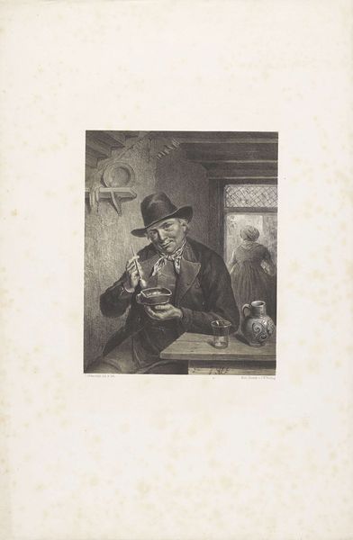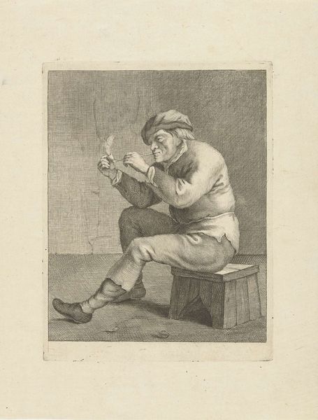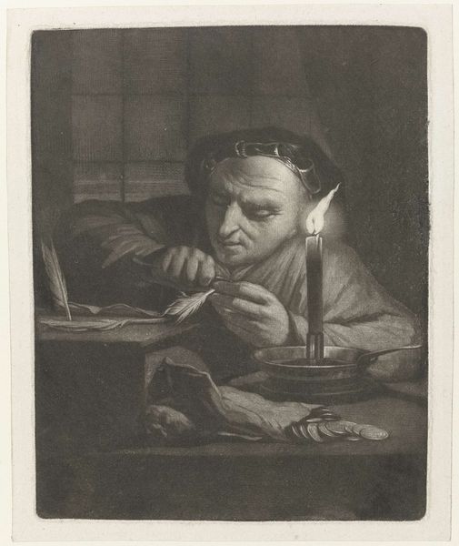 Johannes Schoenmakers created this print, called Pennensnijder, at an unknown date using etching. Schoenmakers lived through a period of massive change in the Netherlands, experiencing the rise and fall of the Dutch Republic, the Batavian Republic, and the Napoleonic Kingdom of Holland. During this era of revolution and shifting social structures, depictions of labor and everyday life gained popularity. Here, we see a figure intently focused on sharpening a quill. The low lighting and intimate setting draw us into his concentrated world of work. Consider what it meant to depict a scholar or writer at this time. What status did intellectual labor hold? Was Schoenmakers offering a romanticized or critical view? What kind of person had access to literacy and learning? Ultimately, this image invites us to reflect on the relationship between labor, knowledge, and the shifting identities of a society in transition. It underscores how even seemingly simple depictions can carry complex social and political meanings.