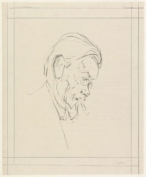 Curator: This is "Porträt," or "Portrait," a 1938 pencil drawing by Ernst Ludwig Kirchner. Editor: It feels… tentative. All those lines, unfinished, searching. He's captured a fleeting moment of introspection. What do you make of it? Curator: Given that this work was created shortly before his suicide, such tentative lines might well be imbued with his own feelings of personal dissolution during that difficult time. In the 1930s, Kirchner's art was declared degenerate by the Nazi regime, which impacted him considerably. Editor: So you see that societal pressure manifested materially in the nervous, almost fragile, application of graphite to paper? Is it the means by which Kirchner externalized his feelings? The labor, that act, transformed into tangible anxiety? Curator: I would suggest it is that societal pressure mixed with, perhaps, some psychological fragility given his history of mental illness. Either way, it highlights his status as a cultural outcast—an artist disavowed by the dominant power structures of the time. His isolation surely exacerbated his inner turmoil. Editor: It is interesting to think of Kirchner using these simple materials – pencil, paper – at this tumultuous period. The cheapness, the availability. They stand in stark contrast to the weighty themes he's grappling with: alienation, mortality... You almost sense him wrestling with how to even make art, how to represent oneself within an oppressive system. Curator: A society which deemed his self-expression degenerate art... which leads us to wonder about its accessibility, if Kirchner ever intended for it to become public. It wasn't shown until after his death. Editor: Regardless, the work feels incredibly raw. A stark portrayal that allows us to focus on Kirchner's struggle to translate the social pressure that burdened him into his practice. It reminds us that even the simplest of tools can carry immense weight. Curator: It underscores the human cost of ideological oppression.