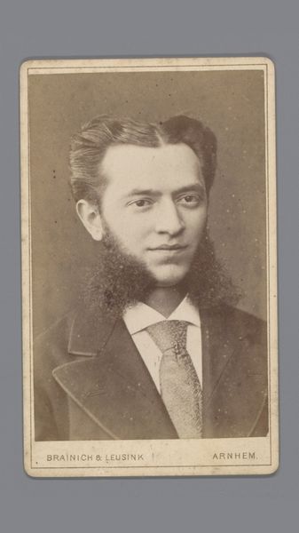 This mounted portrait, likely made by Franz Reissig, presents a young man whose gaze carries echoes of both the past and the future. The oval frame, a classical motif, encases the subject, lending a timeless quality, while the gentleman's formal attire speaks to societal expectations. Consider the pose itself. The direct gaze, reminiscent of ancient portraiture intended to immortalize, evokes a sense of dignity and self-awareness. Yet, in a modern context, the photographic portrait also hints at the burgeoning awareness of individual identity, especially poignant when considering colonial contexts. This yearning for recognition transcends time, resonating through portraits from antiquity to modern-day photographs. It reminds us that, beneath the surface of societal norms and historical context, there is a collective, human desire to be seen, acknowledged, and remembered, engaging us on a deeply subconscious level.