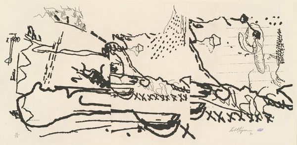 Pierre Alechinsky made this print, Nouvelle île, and it's a world of lines. Look at how they build up, not to describe things realistically, but to give a sense of a place, a feeling. It’s like he's inviting us to invent our own stories within this landscape. The texture comes alive because the lines are allowed to be themselves. They're not trying to hide anything; they overlap, diverge, and create a chaotic kind of harmony. Check out the bottom of the piece, it's almost like scribbles – yet those scribbles, viewed as a whole, suggests a field or a shore. And then there's that splash of red, an omega maybe, hanging there like a question mark or a portal into another dimension. Alechinsky reminds me of Joan Miró, who also built worlds out of playful symbols. What is art if not an island where we can all make landfall, and build our own homes?