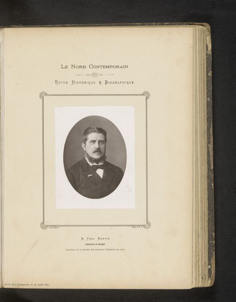 This is a photograph of Émile de Marcère, part of Le Nord Contemporain. The framing of this portrait, particularly the oval shape and the decorative border, evokes the tradition of memorial portraiture, reminiscent of Roman funerary masks. Consider the Roman practice of creating death masks of prominent individuals. These masks, often displayed in household shrines, served as powerful symbols of ancestral lineage and cultural memory. The practice wasn't merely about preserving a likeness. It was a way of keeping the past alive, of allowing the dead to continue influencing the present. Now, observe how this photographic portrait, though modern in its medium, consciously echoes these ancient forms. The subject is framed in an oval, a shape frequently used in commemorative art, suggesting a desire to elevate the sitter to a realm of historical significance. This echo isn't accidental. It reflects a deep-seated human impulse to connect with the past, to find meaning and continuity across generations. These portraits offer a glimpse into how collective memory and cultural traditions shape our perceptions.