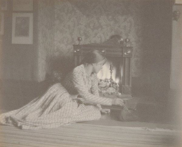 Joseph T. Keiley created "Mercedes de Cordoba" using platinum print. The composition, dominated by soft grayscale tones, evokes a sense of quiet introspection. The subject, reclining in a wicker chair, is bathed in gentle light, with details softened, enhancing the image's ethereal quality. Keiley, involved in the Photo-Secession movement, was deeply invested in establishing photography as a fine art. The manipulation of light and shadow, and the texture of the print, pull the viewer into a space that blurs reality and artistic vision. The photograph's aesthetic aligns with Pictorialism, aiming to elevate photography to the level of painting through atmospheric effects. The chair's texture contrasts with the smooth fabric and the sitter's skin. The interplay of light and dark organizes the scene, creating depth and drawing us into the depicted space. This platinum print offers a look into the debates and aesthetic ambitions that shaped photography at the turn of the century.