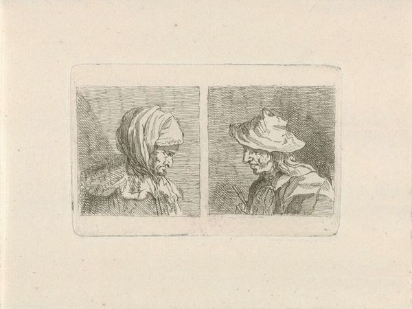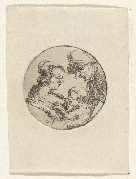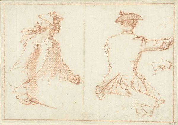 Curator: Here we have a sketch from the British School, titled, well, it's currently unknown, but it resides here at the Tate. Editor: My first thought is of a dream barely remembered. It’s wispy, with this ghostly quality that hangs in the air like smoke. Curator: Indeed. Note how the artist uses delicate lines to define form, creating depth without heavy shading. This approach emphasizes line and shape over volume. Editor: And the hats! I love how those plumed hats give it such a specific, almost theatrical air. It makes me wonder about the untold stories these characters carry. Curator: Precisely! It invites the viewer to consider not just what is depicted, but what is implied about status, era, and perhaps even identity. Editor: It’s amazing how something so simple can spark so many ideas and feelings. Curator: It's a piece that seems to ask more questions than it answers, leaving a lasting echo in the mind's eye.