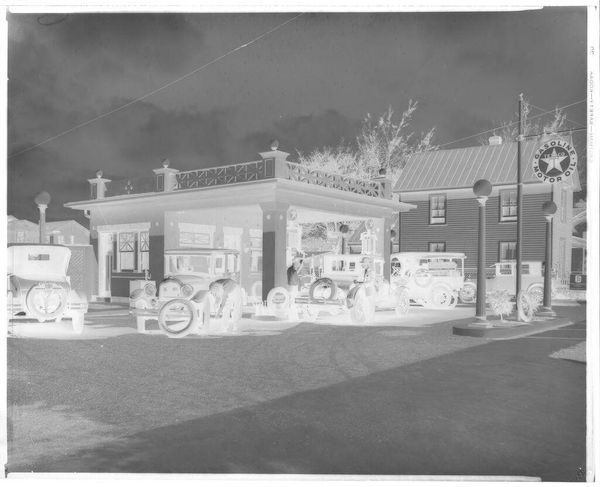 Curator: This intriguing image, of unknown date, by Jack Gould, is entitled "Untitled (several people standing in front of and on balcony of house)." Editor: It’s stark, like an architectural rendering gone ghostly, with those silhouetted figures frozen in time. Curator: Indeed. The photographic reversal lends a curious weight to the composition, highlighting the geometric structures of the building and the arrangement of the figures within. Editor: I'm struck by the implied social dynamics; who are these people, and what is the nature of their gathering? The inverted tones create a sense of alienation, yet there's also a shared experience captured. Curator: I see the photographic technique as emphasizing form over content, creating a tension between the abstract shapes and the represented figures. The negative space becomes almost as important as the subjects themselves. Editor: Perhaps it invites us to consider the complexities of representation, questioning how social narratives are constructed and perceived through the lens of power and visibility. Curator: A stimulating perspective. This work certainly offers rich material for analysis. Editor: Absolutely. It compels us to look beyond the surface and consider the unseen forces at play.