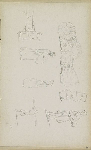 George Hendrik Breitner made this drawing, Figuren en paarden, using graphite on paper. The stark contrast between the graphite and the pale paper creates a dynamic interplay of light and shadow, which animates the clustered forms of figures and horses. Breitner’s gestural lines capture the essence of movement, suggesting a scene bustling with energy, even though the details remain sparse. The composition is carefully arranged to guide the eye through the various figures, leading the viewer to contemplate the relationship between form and the space it occupies. This technique echoes a broader concern with how modernity changes our perception of space and movement. Notice how Breitner uses line and form to convey a sense of modernity and dynamism. This piece isn't just a sketch; it's an exploration of how we see and understand our rapidly changing world.