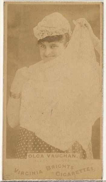 Editor: So this is a photographic print from Allen & Ginter, circa 1885-1891, titled "St. Felix Sisters, From the Actors and Actresses series (N45, Type 1) for Virginia Brights Cigarettes." It’s… sepia toned, faded, almost ghost-like, and very much an advertisement. What strikes you about it? Curator: Well, right away I notice the industrial context. It's a trade card, mass-produced and distributed with cigarettes. We need to examine the implications of how art, or in this case photography, is being integrated into a burgeoning consumer culture. Editor: So, not necessarily about the subjects themselves, the sisters? Curator: Of course, but primarily about the *means* of distribution. Who was buying Virginia Brights cigarettes? What were the material conditions that made this type of advertisement possible? The paper stock, the printing technology… these all tell a story. Consider that photographs at this time still required relatively skilled labor. Editor: I never really thought about the process of *making* an advertisement. It's presented so seamlessly, as if it’s always just *been*. Curator: Exactly. Consider the power dynamics at play. The St. Felix Sisters, whoever they were, became commodities themselves, part of the tobacco industry's machinery to create desire. The mass production of these images enabled a widespread circulation of celebrity culture, fundamentally changing how people saw and consumed art – or at least, images. Editor: So by looking at the materials and context, we are also learning about cultural consumption. Curator: Precisely. And by considering that a photographic studio portrait also took labor from both the photographers and those sitting to have their likeness taken, the more we study it the clearer it becomes. The "how" something is made deeply impacts the "why". What seemed at first like a simple portrait reveals complex relationships.