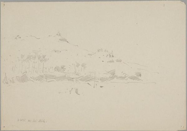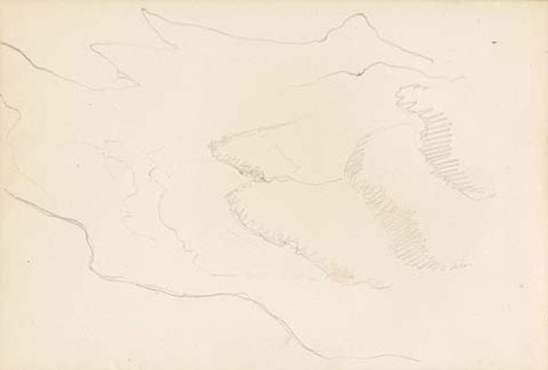 Curator: Joshua Cristall, active in the late 18th and early 19th centuries, created this delicate pencil sketch, part of the Tate Collections. Editor: My first thought? It feels like a whisper of a place, a quiet observation caught just before dawn. Curator: Cristall’s landscapes often explore the sublime through close studies of nature. He was part of a movement that championed direct engagement with the natural world. Editor: I see the geological formations as a metaphor for time itself, layers upon layers. Makes me wonder about Cristall's own fleeting experience in this scene. Curator: It’s interesting to consider how the art market and its institutions have historically valued finished paintings over sketches. Editor: Perhaps this sketch, so raw, so immediate, has a kind of truth that a more polished work might lose. It feels like an invitation to complete the journey ourselves.