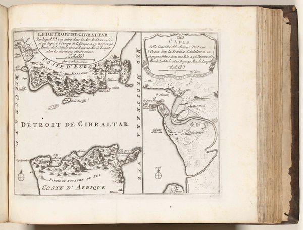 Curator: This fascinating image is titled "Beleg van Rosas, 1693," made sometime between 1693 and 1696. The medium includes drawing, print, ink, and engraving techniques. It is currently held in the Rijksmuseum. Editor: Immediately, the striking geometric precision pulls me in—the star-shaped citadel is just flawlessly rendered against the organic, flowing coastline. A dramatic juxtaposition! Curator: Indeed. Its visual construction highlights the city's vulnerability to the sociopolitical environment, doesn't it? Fortified cities such as Rosas needed complex defenses to survive constant territorial disputes. These defenses weren't merely physical. This is also a cartographic representation of geopolitical power, reflecting control and awareness. Editor: Agreed, though I wonder if we can consider this engraver’s careful articulation of lines beyond mere functionality. Look how the delicate hatch marks and crisp lines play against each other, creating this striking interplay of light and shadow. Curator: I see your point, though understanding the socio-historical importance illuminates its purpose beyond artistry. Consider the strategic importance Rosas held at the time, controlled by Spain, and coveted by France during their numerous conflicts. The level of detail implies this could have been used for strategic military purposes. Editor: I acknowledge the document's intent, but I argue we cannot diminish the almost calligraphic beauty of its inscription and cartouches. The work creates an aesthetic order. And also note how the texture of the paper itself, despite its age, adds another layer of visual complexity. Curator: Certainly, the execution demonstrates skilled craftsmanship; however, without historical perspective, the true magnitude of what we observe becomes inaccessible. Ultimately, it’s about interpreting that moment through history. Editor: A moment expertly captured with masterful draftsmanship that transcends the purely functional or documentary. Curator: Well, perhaps our differing lenses both provide distinct values to this cityscape. Editor: Precisely. The combination enriches its narrative considerably.