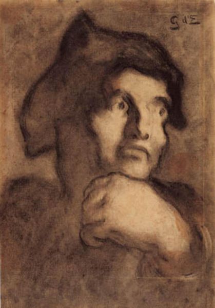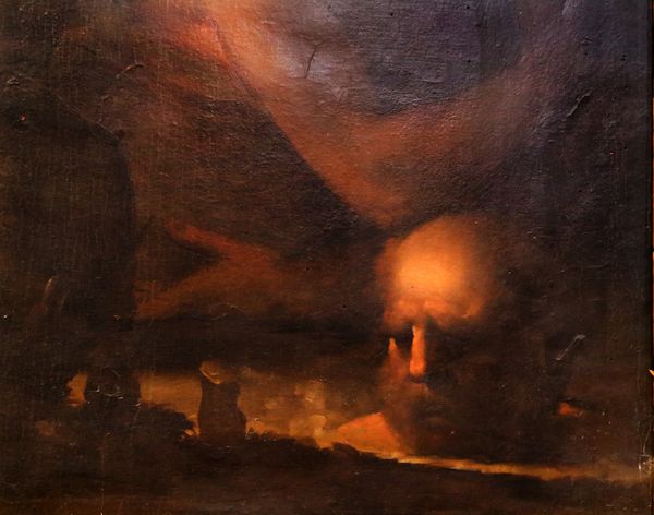 Henry Fuseli made this oil sketch, "Head of a Damned Soul from Dante's Inferno," sometime in the late 18th or early 19th century. Fuseli was a key figure in the Romantic movement, and this work exemplifies the era’s fascination with intense emotion and the sublime. Fuseli, who was born in Switzerland but spent much of his career in Britain, drew inspiration from literature, especially Dante's "Inferno". The painting is a study in psychological torment. Note how the face is contorted and the eyes are closed, perhaps to shut out the horrors of hell. What's most striking is Fuseli’s ability to convey such profound suffering with loose brushwork and dramatic lighting. To truly appreciate Fuseli’s art, we can look into the social context of the time by exploring the relationship between artistic institutions, the print market, and the rise of public exhibitions, allowing us to understand the public role of art. This adds layers of meaning to the work.