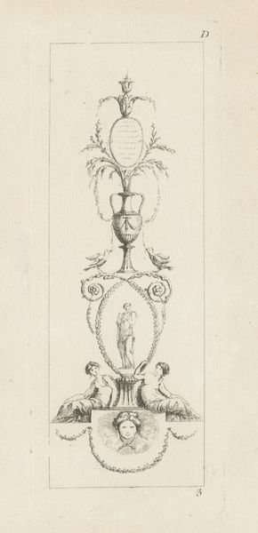 Laurent Guyot created this drawing of an arabesque with a woman holding a chalice using paper and pen in the late 18th century. The monochromatic nature of the drawing highlights the artist's technical skill, showing how Guyot’s artistic decisions can affect our experience of his work. The artist used hatching and cross-hatching to create a sense of volume and depth to the design. The arabesque design showcases the artist's mastery of ornamentation. Arabesques like this were often used in decorative arts like tapestries and furniture, demonstrating the connections between drawing and other design practices. This drawing, intended for reproduction and mass consumption, speaks to the growing commercialization of art in the 18th century. By considering Guyot’s drawing as an object of design, we can better understand its purpose and impact, bridging the gap between the fine and decorative arts.