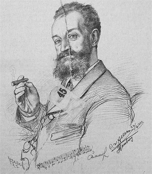 Christian Wilhelm Allers made this drawing of Ernst Schweninger in 1892, using graphite on paper. Though simple in its materials, the drawing speaks volumes about the social position of both artist and sitter. Allers was a well-regarded artist in his day, working primarily in drawing and printmaking. Here, Allers deftly uses the graphite to capture the likeness of Ernst Schweninger, a physician known for his unconventional methods. The choice of graphite lends a sense of immediacy to the image, as if capturing a fleeting moment. The materiality of graphite also lends itself to capturing intricate details and textures of Schweninger’s hair and clothing. The act of drawing itself is deeply intertwined with notions of labor and skill. Allers's expertise is evident in the way he coaxes life-like qualities from simple materials. He spent time and effort to create this piece, and drawing was a skilled profession. So, in appreciating this portrait, we can consider not only the sitter's status, but also the social and economic context of artistic labor in late 19th century Germany.