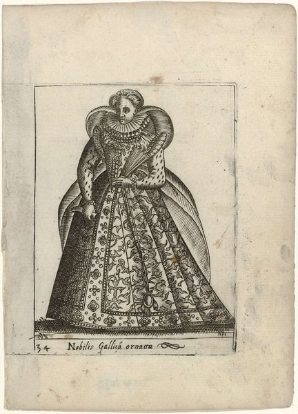 This anonymous print, "Nobilis Galliea ornata," presents us with a woman adorned in the height of fashion. The most striking element is, perhaps, the elaborate ruff encircling her neck. Consider how such a seemingly simple piece of fabric has, across time, served as a potent symbol of status. The ruff, not unlike the towering headdresses of antiquity or the powdered wigs of later centuries, elevates the wearer, both literally and metaphorically. It speaks of wealth, leisure, and a certain detachment from the mundane concerns of everyday life. Think of the way these symbols echo through history, reappearing in different forms, yet always signifying a desire for distinction. The emotional impact lies in the recognition of this shared human impulse. We are drawn to images of power and elegance, perhaps yearning for a touch of that grandeur ourselves. This is the enduring power of symbols.