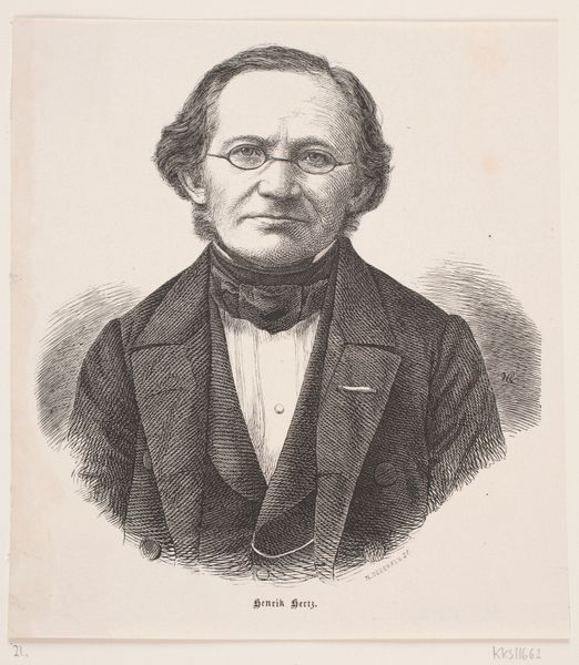 Curator: Before us hangs an engraving simply titled "John Bell," created in 1860 by Currier and Ives. Editor: A very...stark portrait. The lighting gives it a rather somber feel, and the details, while meticulously rendered, almost feel etched into the subject's face. What a network of lines, an absolute catalog of age! Curator: Indeed. The lines, indicative of the engraving medium, not only describe form but also, arguably, destiny. John Bell was a politician at a crucial moment in American history, a time etched with anxieties of secession. The serious cast of his expression hints at the gravity of the times. Editor: Look at how his jacket’s contours mimic the upward movement of the fog-like hatching behind his head. It draws your eyes upward, emphasizing the architecture of his face, the play of light across his forehead and cheekbones. The sharp lines around his mouth create such a focal point. Is it resolute, or tense? I can't tell. Curator: Perhaps both. Bell was a Unionist, trying to avert the Civil War. Notice the determined set of his jaw, the somewhat severe line of his lips. These features speak to his political stance. His physical form becomes an icon representing his ideals, preserving his essence, even after death. A common practice among lithographs and prints of the era, like an immortalization. Editor: Speaking of ideals, there's an intriguing visual paradox in the way the stern, realistic depiction clashes with the almost dreamlike wash of the background. It separates him from any specific context, allowing for multiple interpretations. It's an intentional ambiguity that speaks volumes. Curator: It pulls John Bell from a specific moment and places him as a symbol for this time in American history. Editor: Well, the composition definitely pushes you to question the intersection of character and context, form and content. Thanks to you, now I find that even a face of the past can speak volumes to us now. Curator: I quite agree. Through these preserved prints, a cultural memory echoes. We observe and understand more of what lies beneath its etched lines.