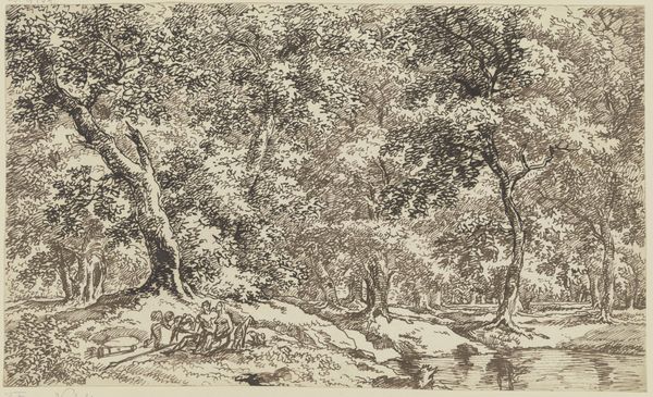 Curator: What a beautiful scene! There's something almost dreamlike about this grove. Editor: It’s indeed visually striking, reminiscent of Impressionist ideals and the Realist traditions. We’re looking at "Albanian Olive Pickers," painted in 1909 by John Singer Sargent. It feels more like a captured moment, in its portrayal of labour and landscape. Curator: Yes, "captured" is the word. Notice how Sargent isn't overly romanticizing their work. There’s dignity here, but it doesn’t shy away from showing the mundane realities, the bending and reaching involved in their harvest. It doesn't try to embellish an understanding of hard labour with idyllic visions, like some other pieces of that time period, which is part of what contributes to that very real dignity of these pickers you mentioned. Editor: Precisely! And let's consider Sargent's choices, perhaps influenced by plein-air practices – the effect of sunlight filtering through the dense canopy. There’s this beautiful contrast between light and shadow that really captures a specific time of day, and its broader place within artistic traditions, to then influence socio-economic structures related to work and cultural depictions. The cultural lens certainly influences my reading of it. Curator: Exactly. Sunlight becomes almost a character in itself, animating the scene, the same way light is employed as an active, vital element in religious paintings of the same period, suggesting, or imposing almost a divine symbolism to ordinary scenes and daily routines, wouldn’t you agree? In some paintings you find it almost "projected" into the narrative, imbuing a sacred understanding onto it. Editor: A compelling analogy! While some see social critique, others will indeed read that almost idyllic vision, projecting perhaps the visual language onto faith, imbuing almost transcendent qualities to these images, creating social identity as much as aesthetic beauty, depending on the audiences or readings. It highlights how visual and material culture create our understanding of the world. The politics of the scene's aesthetic is so incredibly fraught. Curator: It leaves us to examine what symbolism of everyday rituals can evoke or expose within cultural contexts. I find it beautiful and intriguing that it prompts such vastly different views even now! Editor: Definitely, it is these varying reactions which remind us of art’s enduring impact on audiences as much as its history.