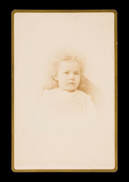 Curator: This photograph, simply titled "Portret van een jonge Koningin Wilhelmina," or "Portrait of a young Queen Wilhelmina," dates from around 1895 to 1915, and it comes to us from the studio of Guy de Coral & Co. It's currently held here at the Rijksmuseum. Editor: The first word that comes to mind? Earnest. She seems so terribly serious, and yet… vulnerable. Like a child playing dress-up as a monarch, though she already was, of course. It’s all soft grays and whites – incredibly gentle. Curator: That gentleness might be partly due to the photographic process itself. These early prints often have a subtle, almost painterly quality. What interests me most, though, is how this image reinforces a certain type of royal iconography – that idea of innocent, virtuous leadership embodied by a young queen. Notice how the pearl necklace functions as a visual shorthand for purity and grace. Editor: Oh, absolutely! It’s practically shouting “I am good!” though she doesn't seem too happy about it. But pearls also carry connotations of tears and sadness, you know? The weight of the crown already bearing down. I’m probably projecting, though… aren’t I? Curator: Perhaps. But these visual symbols rarely operate in isolation. Think of the larger context: a young woman assuming power at a time of great political change. The pearls become more than just decoration. They're an embodiment of inherited responsibility. The artist is capturing the symbolism of youth and power, and yet, a degree of weariness too, perhaps as the editor is saying... Editor: It's that slight droop to her lips, isn't it? That little shadow suggesting worry. Beautiful picture, regardless. Though you almost want to tell her, "It'll all be okay!" – knowing it wasn't, always. It rarely is for royalty. Curator: I agree. It serves as a fascinating intersection of public image and private self. Well, that's all for this piece, thanks for your perspective. Editor: My pleasure! What an introspective moment caught in silver gelatin. Thank you!