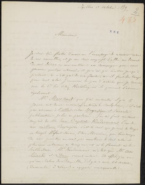 This letter was written by Alexander Schaepkens, probably in the mid-19th century. You can immediately tell a lot from the material itself. Look at the fibers of the paper, its slight discoloration. Notice the iron gall ink, made from tannins and iron salts. The writing has a calligraphic quality, but it’s also quite utilitarian. Before industrialization, paper was made by hand, a labour-intensive process. Even ink had to be mixed. The embodied effort is palpable. The letter is addressed to Christiaan Kramm, an artist and architect. Schaepkens praises Kramm’s work, specifically his writing on Dutch and Flemish artists. Letters like this were the social media of their time, a vital tool of networking and knowledge sharing. It reminds us that even seemingly simple documents are products of skilled work, embedded in a web of social relations. It challenges our separation of art history from the history of craft, labor, and everyday life.
