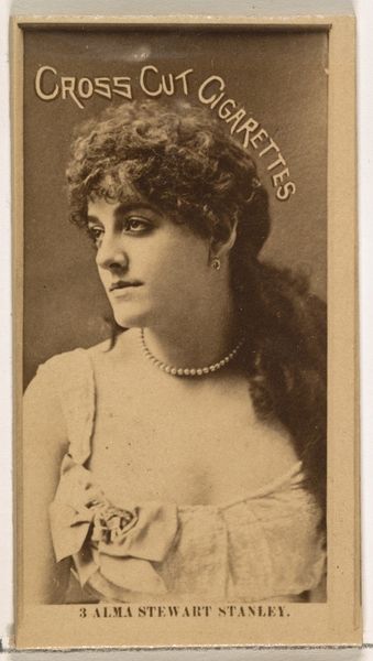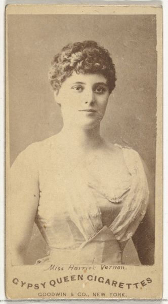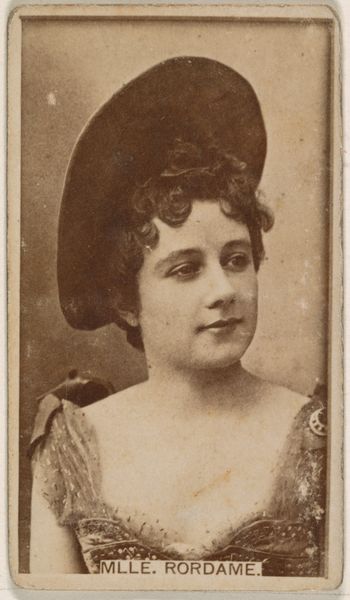 This is a promotional cigarette card of Mlle. Chalo, created by W. Duke, Sons & Co. between 1870 and 1920. The card belongs to a series featuring actors and actresses, a cultural phenomenon that intersected with the rise of both mass media and consumer culture. The image of Mlle. Chalo, with her elaborate costume and poised demeanor, speaks to the spectacle of theater and the commodification of celebrity. It invites questions about how women performers were represented and consumed in this era. The lace trim around the neckline, and the bow perched atop her head, construct a vision of femininity designed to sell cigarettes. Although these cards seem like innocuous novelties, they played a role in shaping societal ideals and desires, entwining personal identity with consumer choices.
