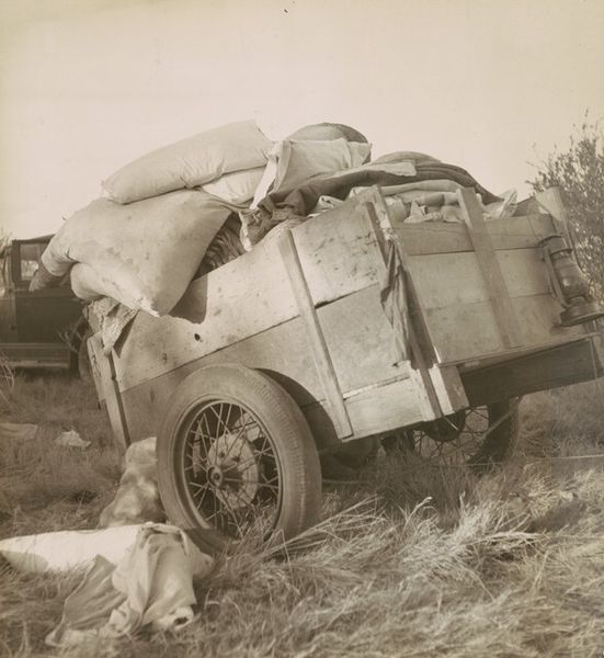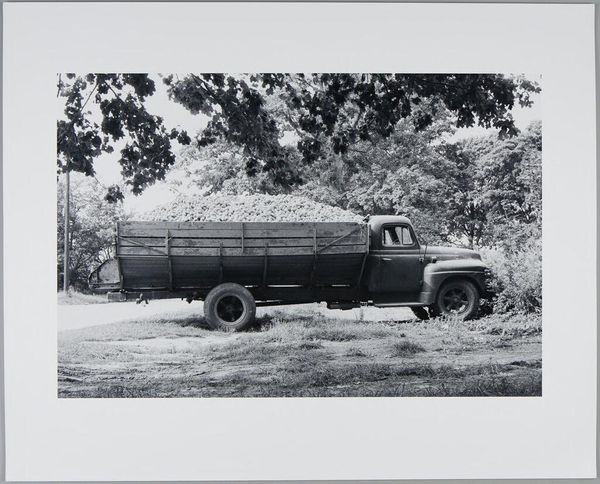 Gordon Parks made this photograph, Lancaster County, Pennsylvania, using black and white film. It’s got this raw, documentary feel. You can sense Parks wasn’t just snapping a picture; he was capturing a moment. The surface is rich with texture, from the rough, worn tires to the haphazardly stacked furniture. The grays are so nuanced, almost velvety. Look at the contrast between the dark, shadowed areas under the truck and the sun-drenched furniture on top. It's like he's painting with light, carving out the scene. Check out that spare tire mounted on the front. The spokes radiate out like a sun, yet it’s stuck there, going nowhere. Parks invites us to see the poetry in the ordinary. It reminds me a bit of Walker Evans, who also had a knack for finding beauty and dignity in everyday American life. Art isn't about perfect answers; it’s about asking compelling questions and seeing the world in new ways.