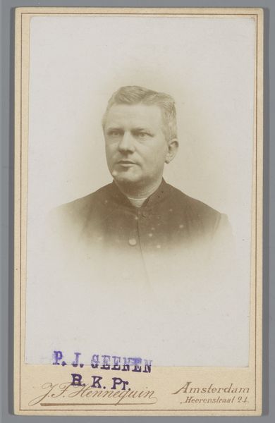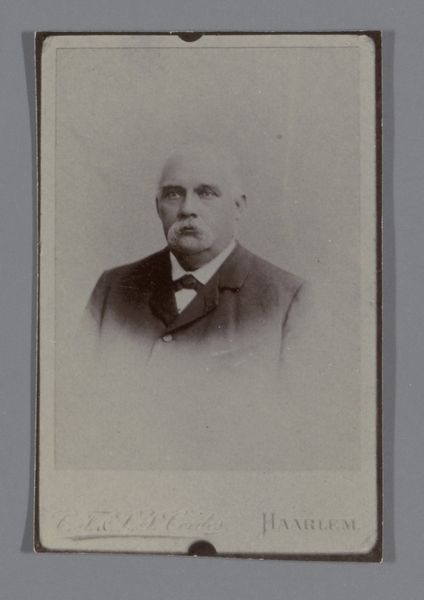 Editor: This photograph, a gelatin-silver print titled "Portret van een onbekende oude man," was taken sometime between 1905 and 1910 by Pieter Jan Nieuwstad. The sitter's severe gaze is striking. What do you see in this piece? Curator: I see a fascinating intersection of mortality and the persistent desire for remembrance. This "unknown old man" becomes, through the photographic process, an archetype. Note how the photographer utilizes shadow and light, especially around the eyes. Do you notice anything about the eyes themselves? Editor: They look a bit asymmetrical and seem heavy. One eyelid droops more than the other. Curator: Precisely. It lends an emotional weight to the image. It isn't just an objective recording of a face; the image holds cultural memory, doesn't it? What might he represent to you? Editor: Perhaps resilience, or the accumulation of life experiences. The lack of idealization makes it feel genuine. Curator: The symbolism is subtle, wouldn’t you say? What might this choice of medium reveal about how identity was viewed in the early 20th century? Editor: Photography as a means of preserving the everyday… democratizing portraiture in a way. I guess I had not really thought of it in these terms. It brings a different light to this portrait, for me. Curator: And, for me, your observation sharpens the awareness of photography as a profound psychological tool to consider the nature of memory.