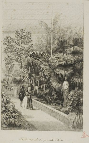 Editor: So, this print is called "Man Sitting and Woman Carrying a Fish," created by Martin Engelbrecht sometime between 1700 and 1756. It looks like it’s an etching and engraving in ink. I'm immediately struck by its delicate detail. There's something serene and almost storybook-like about it. What jumps out at you when you look at this piece? Curator: Oh, it whispers stories, doesn't it? To me, it's like stumbling upon a forgotten stage set. Engelbrecht masterfully blends the real with the exotic. Notice how he contrasts the simple figures with that lush, almost theatrical, backdrop. The etching allows a real depth, doesn't it? What do you make of the fact it's a print, and clearly from a design? Does that inform how you see the scene? Editor: I hadn't really considered it in relation to printmaking conventions! I guess it feels a little less "true to life," almost like a carefully constructed ideal. There’s a stylized feel because it is reproducible… Curator: Exactly! Engelbrecht isn't necessarily aiming for documentary truth but more for a commercially-viable charm. Look closely at how light and shadow play on the figures. Does it feel particularly dramatic, or more gently persuasive? What atmosphere does this give off, do you think? Editor: Persuasive is a good word, it invites you to look closer. It definitely evokes this sense of idyllic domesticity. Something very carefully staged. Curator: Right! A staged domesticity meant to capture the imagination. Perhaps even to sell dreams of a far-off, tranquil existence. It certainly encourages us to think about the stories we tell ourselves through art. Editor: Definitely, I didn't think about it in terms of the commercial viability! This has made me think about how art like this becomes a form of early advertising or world-building, too! Curator: Indeed! It opens our eyes, doesn’t it, to the complex relationship between art, commerce, and our own desires. A delicious can of worms!