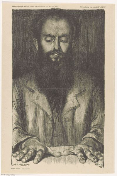 Curator: This is a work by Alphonse Legros, titled "Florestan Mionnet." It appears to be an ink drawing or print, though the specific date is unknown. Editor: There's an undeniable somber quality about it. The density of the ink and the downward gaze create a weighty mood, don't you think? The lines are so evocative. Curator: Indeed. Legros was quite adept at conveying complex emotions through relatively simple means. But consider also the sitter, perhaps caught at a specific point in their life, perhaps even the labour to make ink...How might we connect Mionnet's posture with, say, larger artistic or cultural movements? Editor: Absolutely, but I'm also drawn to the printmaking process itself, and how its labor contributes to its material existence. Notice how the lines defining form seem almost like deliberate hatch marks, almost like the working of the artist's hands upon the metal plate and subsequently onto the paper? It connects it to the broader social reality of production. Curator: A valid point. Also notice how that sitter is occupying that same social, that same historical situation. Editor: The portrait provides an intimate glimpse into a human subject through an aesthetic method rooted in craft. The materiality lends a hand to its meaning. Curator: And beyond craft and materiality, this piece gestures to something more elusive: the intersection of personhood, artistry, and historical moment. Considering Legros' other portraits of prominent men, is there perhaps a coded visual language, almost masculine in its presentation? Editor: Maybe. Yet, doesn't it speak, in its stark simplicity, to the larger conditions that determine social hierarchies within art? Also how, through accessible mediums like printmaking, there comes opportunities of social equality? Curator: Perhaps. Ultimately, exploring these questions opens further avenues for reflection. Editor: Agreed. This work serves as a quiet yet powerful reminder to the labour, craft and production embedded within portraiture itself.