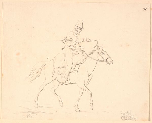 Emanuel Leutze rendered this horse with graphite on paper. The choice of material and process here is telling. Graphite, easily erasable, allows for studies and quick sketches, a world away from the labor-intensive, permanent medium of oil paint usually favored by Leutze. This drawing captures the immediacy of observation. You can see the texture of the paper coming through, almost like the rugged terrain the horse might traverse. The saddle is meticulously detailed. This modest drawing can be understood in relation to the larger history of both fine art and craft. On the one hand, sketching is a quick and easy process that allows for the instant creation of the artwork. At the same time, the skills required to master graphite drawing require years of training. The amount of ‘work’ embedded in this drawing is related to the artistic experience. Ultimately, the drawing highlights the relationship between labor, skill, and artistic expression.