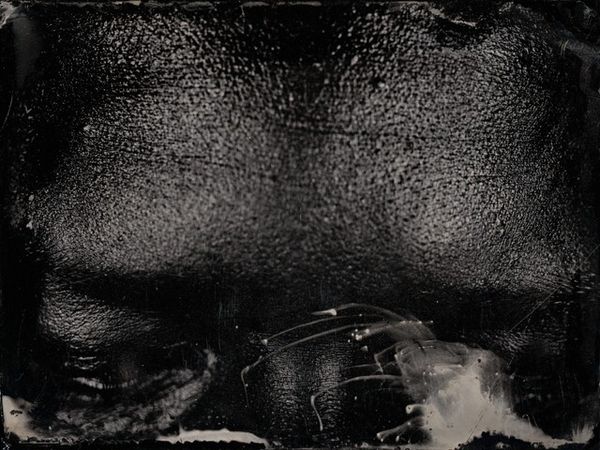 Curator: I find this monochrome photograph incredibly striking. Minor White created "Frosted Window, Rochester, New York" in 1962. What do you make of it? Editor: The immediate effect is a kind of melancholic beauty, like looking through a smeared lens. The contrast between the crisp, detailed ice patterns and the streaked, blurry sections really grabs you. Curator: White's photographs were deeply rooted in a desire to uncover hidden meanings. In his own way he advanced an understanding of photography that was not documentary, a photograph that instead aimed to convey spirituality, as informed by Zen Buddhism. Editor: So, for White, photography became almost like a meditative practice—focusing on surface to find some other depth. And it’s amazing what you can find in something as mundane as a frosted window. The material itself is transformed. Curator: The location too—Rochester—is interesting because it was a hub for photographic manufacturing in the mid-20th century, especially with Eastman Kodak's presence. This image challenges the ideas behind the industrial means of image-making. Editor: It's like he’s taking this mass-produced technology and using it to reveal something deeply personal and handmade. Even the abstraction brings focus to his process; to him and his labor. I mean, the patterns—do we know if White caused the circular shape? Curator: That's an intriguing question! It highlights how White uses commonplace and readily available phenomena. The very "stuff" of the everyday can evoke transcendence and personal insight. Editor: There is a delicate dance here between chance and intent. In the making of the work White somehow found an entry to exploring those ineffable feelings. The way he works the material almost borders on performance, or even ritual. Curator: In his writing and teaching, Minor White always pushed for photographers to engage in self-discovery through their work, and this piece speaks so eloquently to his views. Editor: Absolutely. "Frosted Window" is beautiful—revealing how even in the harshest conditions, or coldest material, moments of profound beauty and insight can emerge.