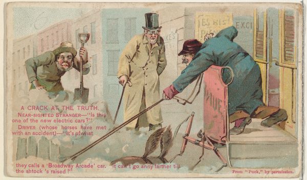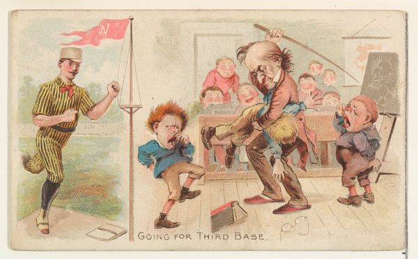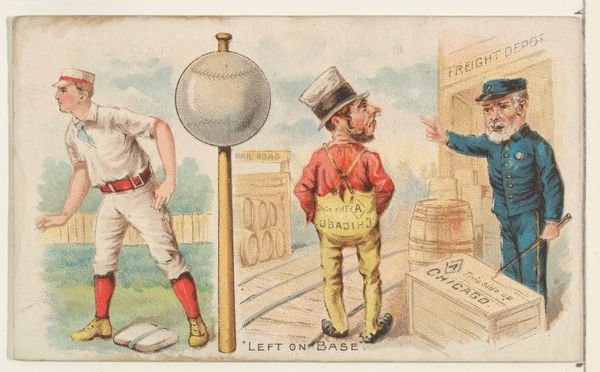 This small chromolithograph was produced by W. Duke, Sons & Co., an American tobacco company, as part of a baseball card series. It presents a humorous take on the sport, revealing social dynamics of the time. Made during a period of baseball’s rising popularity, the image reflects the sport’s integration into American culture. We see a baseball game, with its players and spectators, but also an attempt to view the game for free. A policeman is trying to catch a young barefoot boy who is peeking through a fence, presumably to watch the game without paying. This scene subtly critiques the commercialization of leisure and access to public entertainment. The card’s humour isn’t just about a child’s mischief, it highlights socio-economic divides, and the policing of public spaces. Understanding this image requires us to look beyond its surface. Archival research into the economics of baseball, social policies, and the marketing strategies of tobacco companies helps reveal the complex interplay of commerce, class, and culture in late 19th-century America.