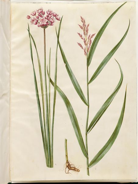 Editor: Here we have Hans Simon Holtzbecker’s “Asphodelus ramosus (grenet affodil),” made sometime between 1649 and 1659. It's rendered in watercolor, gouache and drawing. It strikes me as beautifully precise. What do you see in this work? Curator: What I see here is a direct relationship between material conditions and artistic production. Holtzbecker’s access to high-quality pigments, paper, and brushes enabled this incredible realism. It makes you wonder, what was the status of artists working with such care at that time? Was this destined for scientific study, or perhaps commissioned by a wealthy patron eager to show status? Editor: That's a fascinating point! It also makes me consider the labor involved. Such detail must have required countless hours of patient work. Curator: Precisely. The time investment underscores the value placed on this type of meticulous botanical documentation. Consider how the very means of production—the mixing of pigments, the application of washes—became integral to representing nature with such precision. Editor: It almost feels like the act of observing and recording becomes the art itself. It seems very separate from the idea of "art for art's sake" though. Curator: I agree. This piece makes us consider who had access to the means of creating and consuming art, but it also shows that the artwork and artistic study can serve other scientific functions too. Editor: Thank you. I'll think about the historical context and labor when looking at art in the future. Curator: And I will also.
