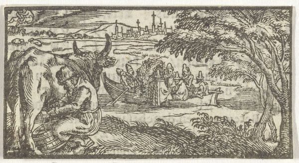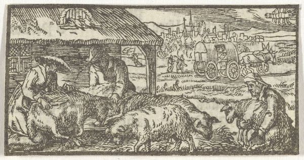 Editor: Here we have a 17th-century woodcut print entitled "Maart," artist unknown, offering a detailed, almost stark depiction of labor. The figures working really give me a sense of the demands of rural life. What story do you see unfolding within this scene? Curator: Well, placing "Maart" within its historical context, we find these depictions of seasonal labor often served a dual purpose. Yes, they represented the realities of peasant life, but also reinforced the social order. Consider how these prints, though seemingly simple genre scenes, circulated amongst different social classes. What values were they intended to instill, and in whom? Editor: That's interesting... so the print is less a neutral depiction of labor, and more an assertion of it, for potentially political reasons? Curator: Precisely. These prints were frequently commissioned by the wealthy to affirm a divinely ordained social hierarchy. Peasants are dutifully laboring, and, in some ways, fulfilling their role in society. Do you notice how this contrasts with imagery aimed at a peasant audience? Editor: I do see it differently now that you mention it, knowing about the commissioning factor. It makes me look more closely at their postures and where they're working... I wonder, did the artist have any say in the scene itself, or were they generally following a brief from the person who paid for the work? Curator: Artists occupied a complex space, somewhere between artisan and visionary. The extent of their creative agency would depend on various factors: their reputation, the patron’s level of sophistication, and evolving artistic norms of the time. What would you say this particular woodcut adds to the understanding of the socio-political dynamic, regardless of its creation history? Editor: It highlights the constant need for manual labour but in a manner that seems strangely idyllic when it isn’t, or wouldn’t have been, for the ones involved. I didn’t see this duality at first. Thanks for your perspective. Curator: My pleasure. It’s crucial to recognize how seemingly benign images participate in complex socio-political dialogues, making these historical works endlessly fascinating.