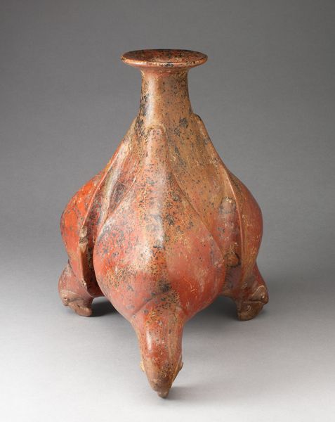 Curator: Before us, we have an exquisite example of ancient craftsmanship: an "Amphoriskos (Container for Oil)" dating back to the 2nd century. It resides here at The Art Institute of Chicago. Editor: My initial impression is that it appears strangely muted, ghostly even. Is it the wear and tear, or a deliberate compositional choice? Curator: The muted quality speaks more to its age and material fragility rather than intention. Notice the graceful, elongated teardrop form and how the twin handles, looping elegantly, balance the composition. This vessel shows the skill of ancient glassmakers in manipulating form and surface. Editor: I agree, structurally, it’s rather compelling, but let’s also think about the function. What does an "oil container" signify in the grand narrative? Whose oil was this, for what purpose, and how might the ownership of precious oils shape identity and social hierarchy within ancient communities? Curator: That's a powerful interpretive avenue, examining its use-value within ancient culture. I would, however, point out the technique: the delicate marbling effect achieved within the glass itself is aesthetically arresting. Editor: These patterns—are they meant to mimic precious stones? Curator: Possibly. However, the overall simplicity and the relatively limited color palette direct the eye to the purity of form and the craftsmanship over sheer display of wealth. Editor: Even if it’s subtle, this could imply an aspiration to something finer, and speaks volumes about socioeconomic stratification even then. Thinking more widely, perhaps this type of item symbolizes ancient Mediterranean trade routes, demonstrating intercultural connections, shared rituals, and the transportation of symbolic or practical oils through those exchange systems. Curator: It speaks to the human drive to create functional objects that are also visually pleasing and indicative of a specific technological skillset. Editor: True. Appreciating art like this forces us to imagine lives distinct from our own. I find its austere beauty deeply poignant. Curator: Indeed, contemplating this simple object is truly awe-inspiring.