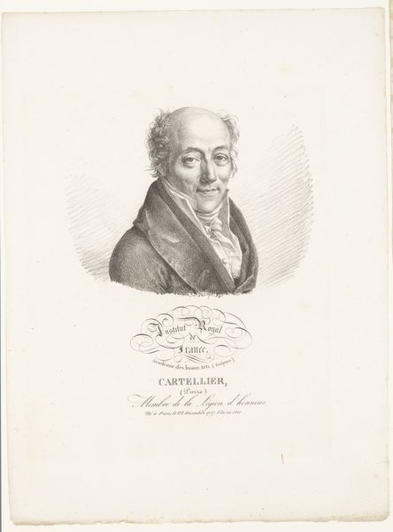 Editor: So, here we have Julien-Léopold Boilly's "Portrait of the Poet François-Nicolas-Vincent Campenon," created in 1821, using graphite. I'm immediately struck by the crispness, even with a somewhat academic feel. It feels very proper, very 'of its time'. What catches your eye about this portrait? Curator: It’s true, there's a formality, almost a self-aware posture, isn’t there? But what I find intriguing is how Boilly manages to inject a spark of life into what could be a very dry, Neoclassical exercise. The almost… wispy quality of the graphite, that delicate rendering of Campenon's curls – it whispers of a man with perhaps more passion than his stoic pose lets on. Do you see what I mean? It makes me wonder about the relationship between artist and sitter, the stories they might have shared while creating this image. Editor: I do. It's like the image is holding back a smile. I had only really seen it as something static. The 'holding back' almost suggests… a narrative, rather than a portrait? I see that narrative even more given the inclusion of that signature and Institute Royal identifier, as if trying to immortalize this fellow, beyond just looks. Curator: Exactly! It’s as if Boilly is saying, "Here is a man, yes, but also a story, a fragment of history." I’m always drawn to how artists manage to capture not just a likeness but a kind of… lingering echo of the person they're depicting. Think of it as a portal, ever so slightly ajar, offering us a fleeting glimpse into another world. Editor: So, while this work feels neoclassical, the application, in graphite and on paper, combined with a somewhat realistic but subdued character, brings it alive. Curator: Precisely! A wonderful catch. Thank you for your fresh insights, that’s certainly altered my view. I appreciate the moment to ruminate on art's many lives.