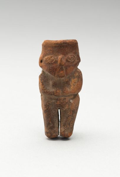 This four-inch sculpture of a female figure was created by an artist from Colima, part of modern-day Mexico. The figure is a window into the social roles and identities within the Colima culture. The woman is depicted kneeling with a burden on her left shoulder, possibly symbolizing the labor and responsibilities placed upon women in this society. Her attire, a simple skirt and headdress, along with her bare chest, indicates her status and role within the community. The Colima culture, known for its ceramic artistry, often used such figures in funerary offerings. These pieces provide a glimpse into their beliefs about the afterlife. Consider the emotional depth embedded in this small figure. She represents not just an individual, but a collective identity, reflecting the lives, labors, and legacies of the women of Colima.