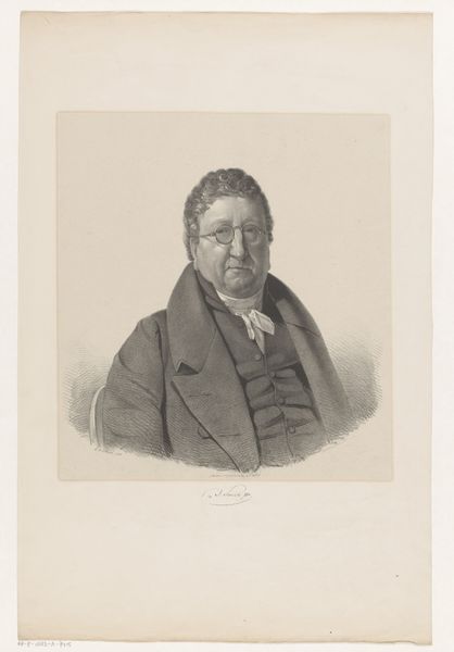 Curator: We're now looking at a piece titled "Portret van de toneelschrijver Victor-Joseph Étienne de Jouy" by Julien-Léopold Boilly, created around 1820. It's rendered using engraving, pencil and other graphic-art techniques. Editor: It’s a striking image. I'm immediately drawn to the texture created by the pencil hatching and the very apparent materiality of the print itself. You can almost feel the grain of the paper. Curator: Indeed. The academic-art style is evident in the meticulous rendering of form. Notice how Boilly employs line and shadow to articulate Jouy's features. There’s a classical restraint, despite the potential for detail offered by the medium. Editor: I’m interested in how the printmaking process would have impacted the final product. Consider the engraver’s skill, translating the artist's intention through precise labor, etching the plate that is eventually used to mass produce the image and give it social currency. Curator: Absolutely. But consider also the portrait’s composition: the deliberate choice to depict Jouy with a subtle sense of gravitas. The formal elements suggest a calculated effort to convey his intellectual and societal standing. Observe how the swirling text mimics the sitter's unruly hair, juxtaposing text with a corporeal figure. Editor: Right, yet, the layering of the image production adds complexity. Was this designed as a personal portrait, or to make Jouy a popular figure in France by way of this engraving? This brings questions of accessibility, labor, and perhaps propaganda, as Jouy seems idealized through the skilled hand of the artist and the printmaker's means. Curator: And let's acknowledge how the black and white tonality underscores the neo-classical aesthetics. It recalls the clean lines and forms characteristic of the era. This visual austerity becomes integral to how we understand Jouy within that historical moment. Editor: A print like this makes one consider the materials required, the social hierarchies embedded in printmaking studios, and how images like these participated in disseminating culture at a rapid rate. I'm struck by how much labor and material went into a seemingly simple portrait. Curator: Considering the intricate use of light and shadow and classical form, it does reveal the hand of the artist and their meticulous control. Editor: And considering the implications of mass production in graphic art, one realizes that even an image rendered in a classical mode involves questions of materials, labor, and, ultimately, social and economic circulation.