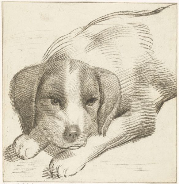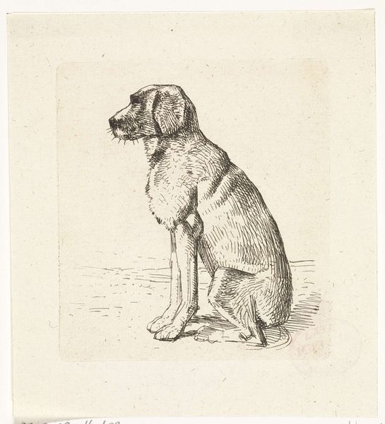 This graphite drawing of a sitting dog comes to us from the hand of Victor Müller. The dog, an enduring symbol of fidelity and watchfulness, occupies a prominent place in the collective psyche. From the loyal canines guarding the gates of the underworld in ancient mythologies, to their presence in domestic scenes, dogs evoke a sense of unwavering loyalty. Consider, for example, the dogs depicted alongside Diana, the Roman goddess of the hunt, or Hecate, the Greek goddess of witchcraft, evoking an emotional connection through the archetype of guardian and companion. This image, rendered in a humble yet evocative medium, taps into our deep-seated emotional connection with animals. As the dog gazes intently to the left, we see the faithful animal and contemplate the relationship between humans and nature. A bond built on trust, companionship, and unspoken understanding.