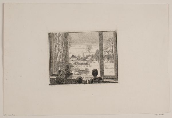 Eugène Verboeckhoven created this tiny etching, "Veroordeelde vrouw op een kar", depicting a condemned woman on a cart. The visual experience is dominated by the stark contrast between the dark figures of the soldiers and the pale figure of the woman, creating a dramatic tableau. Verboeckhoven's composition arranges the scene as a semiotic system, with each element serving as a sign. The soldiers represent authority and order, while the crowd signifies societal judgment. The woman, positioned centrally yet passively on the cart, becomes a symbol of vulnerability and societal control. The artist uses linear perspective to draw the viewer's eye towards the background, but this gaze ends with the symbol of the monkey on the pole which challenges fixed ideas about space, perception and power. Notice how Verboeckhoven uses the medium of etching to create a sense of immediacy, as if capturing a fleeting moment of public drama. This aesthetic choice functions as a crucial element in the larger cultural discourse surrounding justice and punishment, making this artwork a site of ongoing interpretation.