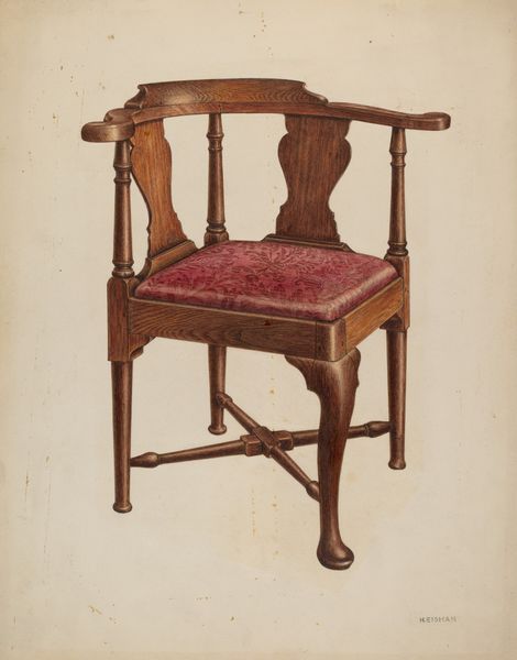 Natalie Simon created this rendering of a bed using watercolor and graphite, at an unknown date. Simon was born in an era marked by distinct gender roles and expectations. Consider the bed, often associated with the domestic sphere and traditionally linked to women's roles as homemakers. This piece invites a reflection on women's confinement to private spaces, as well as the societal norms that dictated their identities and limited their opportunities. This image prompts us to think about the history of domestic labor and gendered expectations, while acknowledging the bed as a site of rest, intimacy, and personal reflection. The choice to represent it highlights its cultural and symbolic significance. The artwork develops alternative narratives by representing the domestic sphere as a symbol of both comfort and confinement, reflecting the complex realities of women's lives during that era. Simon's artistic interpretation of "Bed" encourages us to question and challenge conventional representations of women and domesticity.