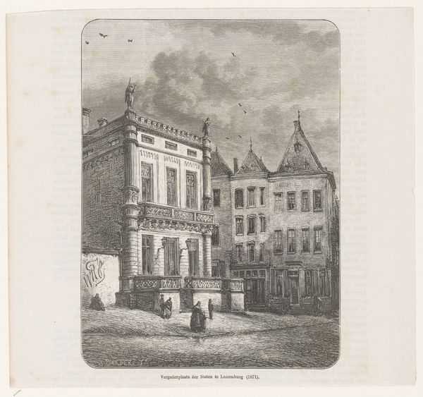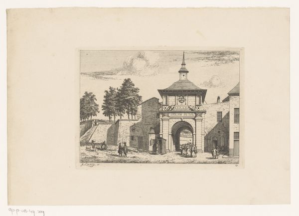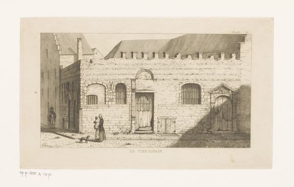 Jean Théodore Joseph Linnig created this print titled "Gezicht op de Vierschaar in Antwerpen". It gives us a peek into 19th-century Antwerp. Linnig, coming from a family of artists, captured the essence of daily life in Belgium. Here, we see the Vierschaar, once a site for civic duties, now existing quietly within the urban landscape. Notice how the architecture speaks of history, yet life goes on around it. A woman tends to her chickens, seemingly undisturbed by the building’s past. Consider how Linnig, as an artist of his time, chose to portray this scene. Was he drawn to the quiet dignity of everyday life, or was he reflecting on the changing face of his city? This artwork is a reminder that history isn't just about grand events, it is also about the lives of ordinary people. It invites us to reflect on our own relationship with the spaces we inhabit and the stories they hold.