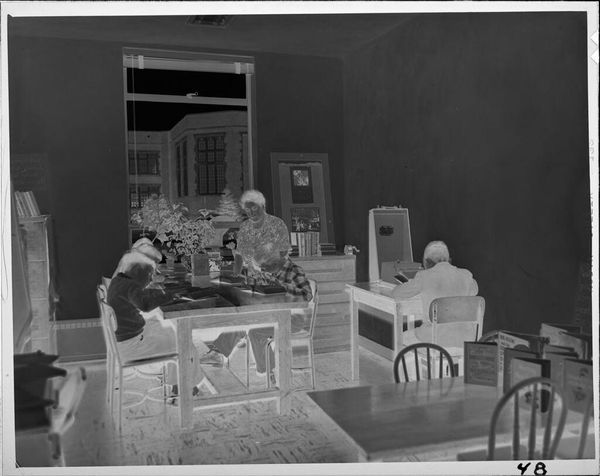 Editor: This photograph by Lucian and Mary Brown, "Untitled (boy playing with model garage)," shows a boy kneeling on the floor, focused intently on his toy garage. It feels nostalgic, capturing a quiet moment of childhood. What cultural story does this image tell? Curator: The photo offers insight into the cultural construction of childhood and play in mid-20th century America. Toys like model garages weren't just objects; they were tools shaping gender roles and societal aspirations. Editor: How so? Curator: The toys reflect a cultural emphasis on boys' future roles in a car-centric, suburban society. It highlights how material culture actively socialized children into specific roles and expectations. I wonder, how might the absence of color affect our interpretation? Editor: Good point. It does universalize the feeling beyond a specific time and place, emphasizing the themes of childhood and play itself. Curator: Indeed, it allows us to reflect on the broader historical forces that shape seemingly innocent moments.