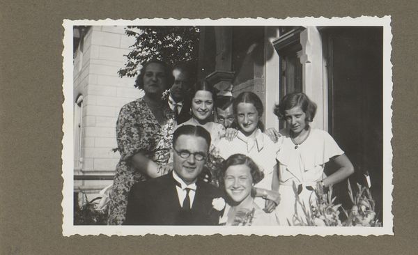This black and white photograph captures Wilhelmina van Zijll de Jong with four other women on a veranda. It feels like a snapshot of a moment, an impulse preserved through the medium of the camera. I'm really drawn to the way the photograph almost feels soft. It’s not about a crisp, clear image but more about capturing a certain feeling. The tones are beautifully modulated. The details are so evocative – the patterns on the dresses, the way the light catches the women's faces, there's a real human connection in this image. It reminds me a bit of the work of Judith Joy Ross, who also captured the nuances of human expression in seemingly ordinary moments. Ultimately, it's a photograph that stays with you, inviting contemplation and multiple interpretations. It resists easy answers, and that's what makes it so compelling.