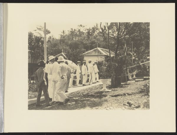 This photograph by Heinrich Ernst & Co captures a moment in Tandjong Poera, Langkat Sumatra, featuring Paul and Lucie Sandel with a large group and a crocodile. Look at the tonal range here, the way the sepia tones create an overall mood. You can feel the heat and the humidity, can’t you? The texture is revealed through the contrast, like the rough skin of the crocodile versus the smooth fabrics of the Sandels’ clothing. The way the light catches the crocodile’s scales, makes me think about brushstrokes and the physical act of applying paint. Each scale is a tiny gesture, a little mark, like a pointillist painting, or the way Pollock flicked paint onto a canvas. The differences in texture bring out the emotional layers. It's interesting how a photograph, typically seen as a record of reality, can be just as expressive as a painting. Think of Gerhard Richter's blurred photos turned paintings or Vija Celmins’ meticulous renderings of photographs. This image, like those artworks, reminds us that seeing is always a form of interpretation.