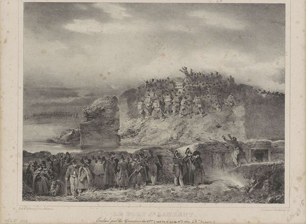 Curator: So, what’s your immediate impression of this scene? It’s entitled “Grote kalkoven”, or “Large Limekiln.” Editor: A rather bleak depiction of labor and rest! It feels weighted with…dust. Does that make sense? Dust and toil. Curator: It does. The print, currently housed at the Rijksmuseum, is from sometime between 1638 and 1706, and was created by Cornelis Visscher, and the medium is engraving. Editor: Limekilns weren't known for their glamour. I'm wondering, what could a limekiln symbolize at the time, beyond its obvious utilitarian function? It is very gritty. Curator: The limekiln could certainly symbolize transformation. The intense heat transmutes raw limestone into lime, a crucial building material. In a broader context, fire, often linked to kilns, symbolizes purification, but also destruction. Editor: Oh, purification and destruction in one messy industrial package! It's such a raw image. People milling all around. So many resting down the bottom right side and busy at the top. There are symbolic divides across the different vertical levels within the imagery. A clear separation between those that toil up top and those that are left below. Curator: Precisely. The figures atop the kiln are actively engaged in the transformative process, almost alchemists, whereas the ones resting can symbolize acceptance and passive living. There’s almost an elemental relationship here: Earth giving way to Fire. Editor: True, or earth as in our place of dwelling, with fire as an existential element; transformation, and then acceptance that transformation will, invariably happen. A somber observation. Sobering really, given we're looking at, essentially, dust. It also just hit me that the image’s stark monochrome echoes the ash and grit of the scene itself. The engraver truly captures a certain melancholy associated with human effort. Curator: Visscher offers us an intimate, and honest slice of 17th-century labor. There are certainly cultural connotations—industry—that speak volumes beyond just a snapshot. Editor: Exactly! A powerful image…with something elemental about it, too. As we were saying. Dust to dust!