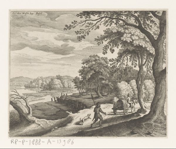Editor: Here we have Pavel Petrovich Svinin's monochrome drawing, "View of Morrisville, General Moreau's Country House in Pennsylvania," likely created between 1811 and 1816 using charcoal and pencil. The house seems grand, yet the overall impression is melancholic, softened somehow. What are your thoughts on this piece? Curator: Well, my dear, it whispers to me of lost empires and the fleeting nature of glory. That house, possibly The Woodlands, sits like a Roman ruin in the making, doesn't it? Svinin, exiled from Russia, perhaps saw his own story reflected in Moreau, a French general also in exile. See how the delicate neoclassical lines of the building are juxtaposed with the rugged, almost wild landscape. Editor: I do. So you see this landscape as less a depiction of place, and more a... a metaphor? Curator: Precisely! This isn’t just about bricks and mortar; it's about ambition, displacement, and the inevitable decay of all things. The monochrome palette only heightens that sense of transience, don't you think? What did catch your eye about it? Editor: The bridge! It seems so precarious, yet life is moving across it. And the classical architecture—doesn't it look so out of place here? Curator: A lovely observation! Indeed, it embodies the spirit of Neoclassicism – order imposed onto nature. This reminds me of when I tried to "organize" my sock drawer – the socks always win, eventually. Life always does. Editor: This has given me such a different perspective. I originally saw it as just a historical record. Curator: Art rarely is 'just' anything. Now you perceive its deeper notes, that's a good start, and that's all we need to carry.